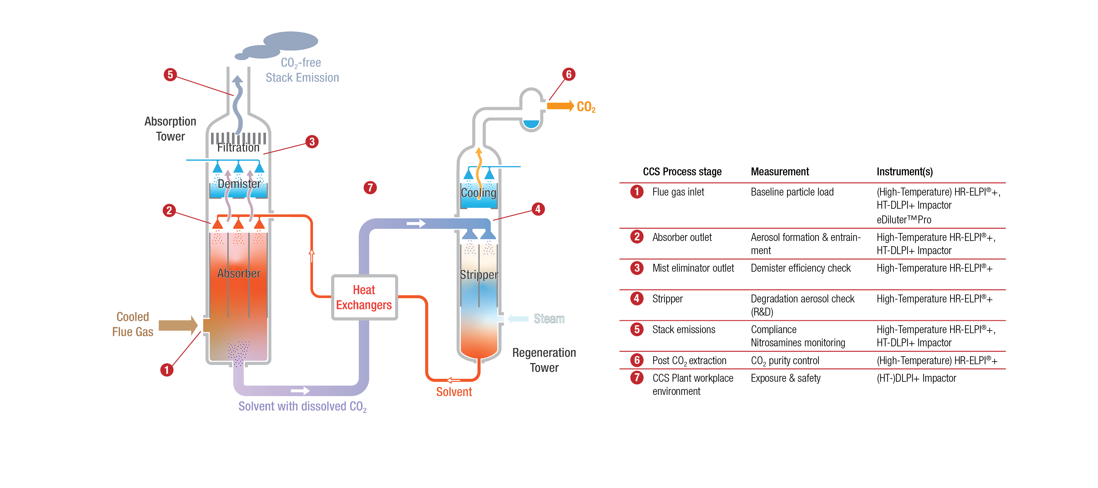 The schematic below shows the various Dekati aerosol measurement solutions for use in CCS process control and optimization: